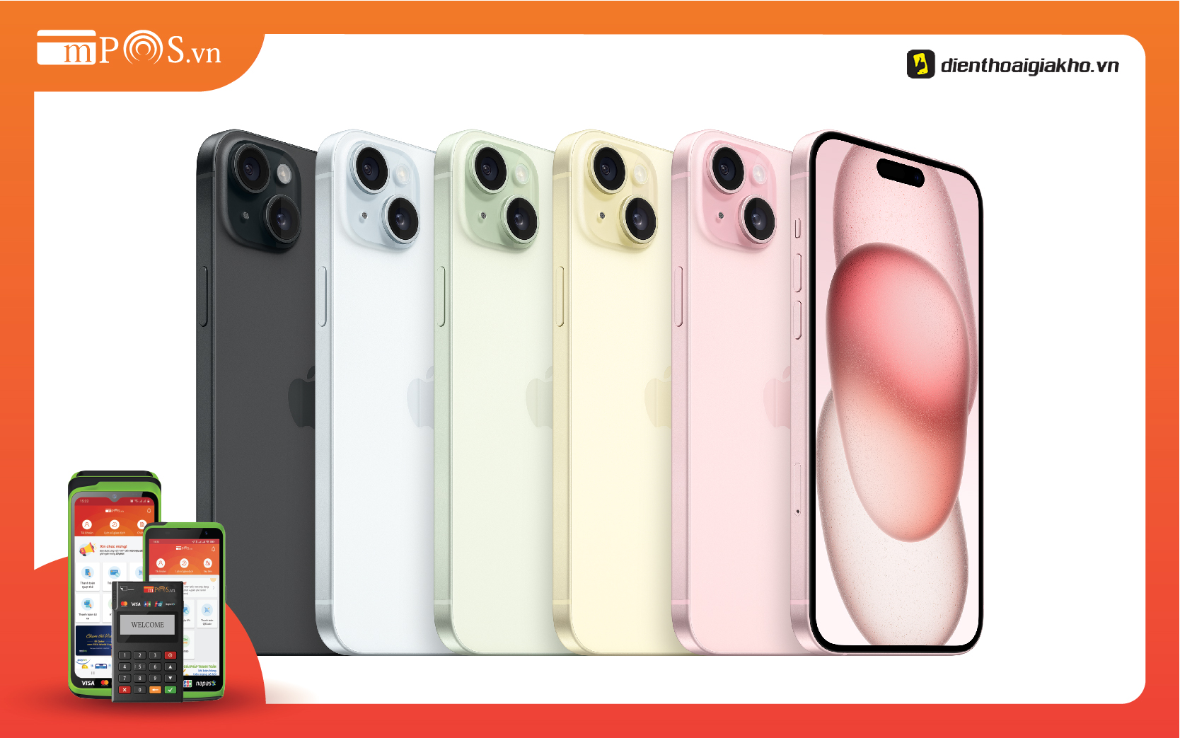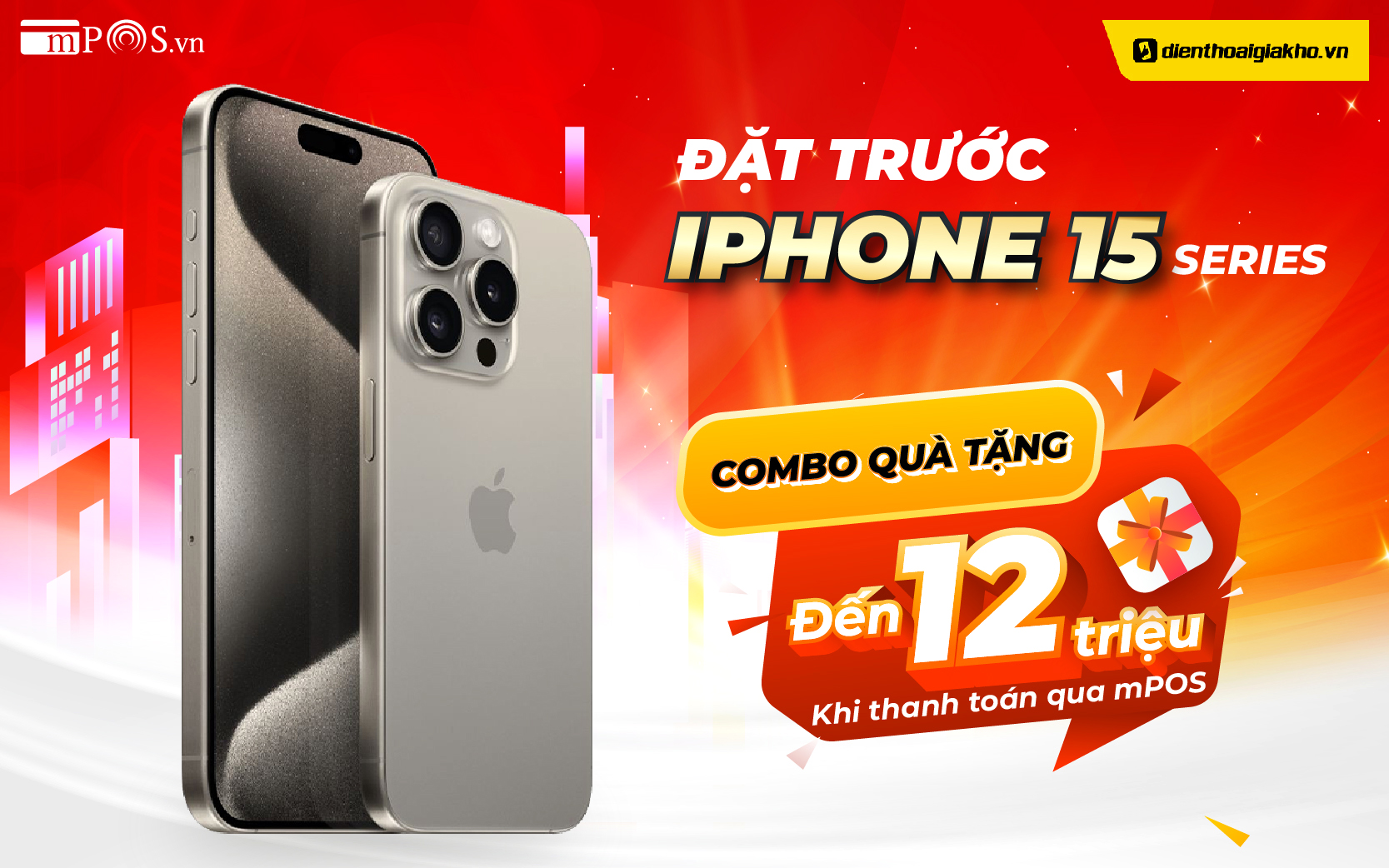 Hiện tại, ĐIỆN THOẠI GIÁ KHO cũng đã phối hợp cùng mPOS triển khai ưu đãi với tổng trị giá đến 12 triệu đồng cho khách hàng đặt trước iPhone 15 series. Hãy cùng mPOS tìm hiểu chi tiết nhé!