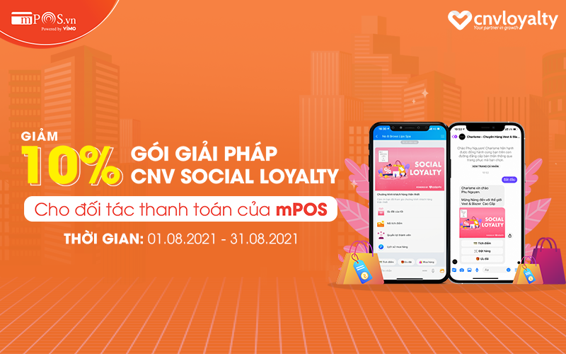 GIẢM 10% GÓI GIẢI PHÁP CNV SOCIAL LOYALTY CHO CÁC ĐỐI TÁC THANH TOÁN CỦA mPOS