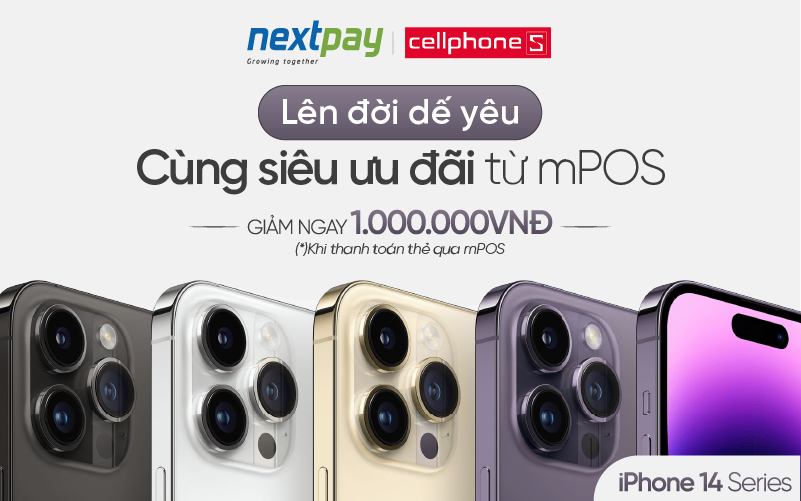Sau hơn nửa tháng ra mắt, iPhone 14 series sẽ chính thức được mở bán tại thị trường Việt Nam vào ngày 14/10. Hiện nay, các đại lý uỷ quyền của Apple đã bắt đầu nhận đặt trước với nhiều khuyến mãi hấp dẫn dành cho khách hàng. Trong đó, có thể kể đến ưu đãi giảm nóng 1 triệu đồng do mPOS và Đối tác CellphoneS hợp tác triển khai.