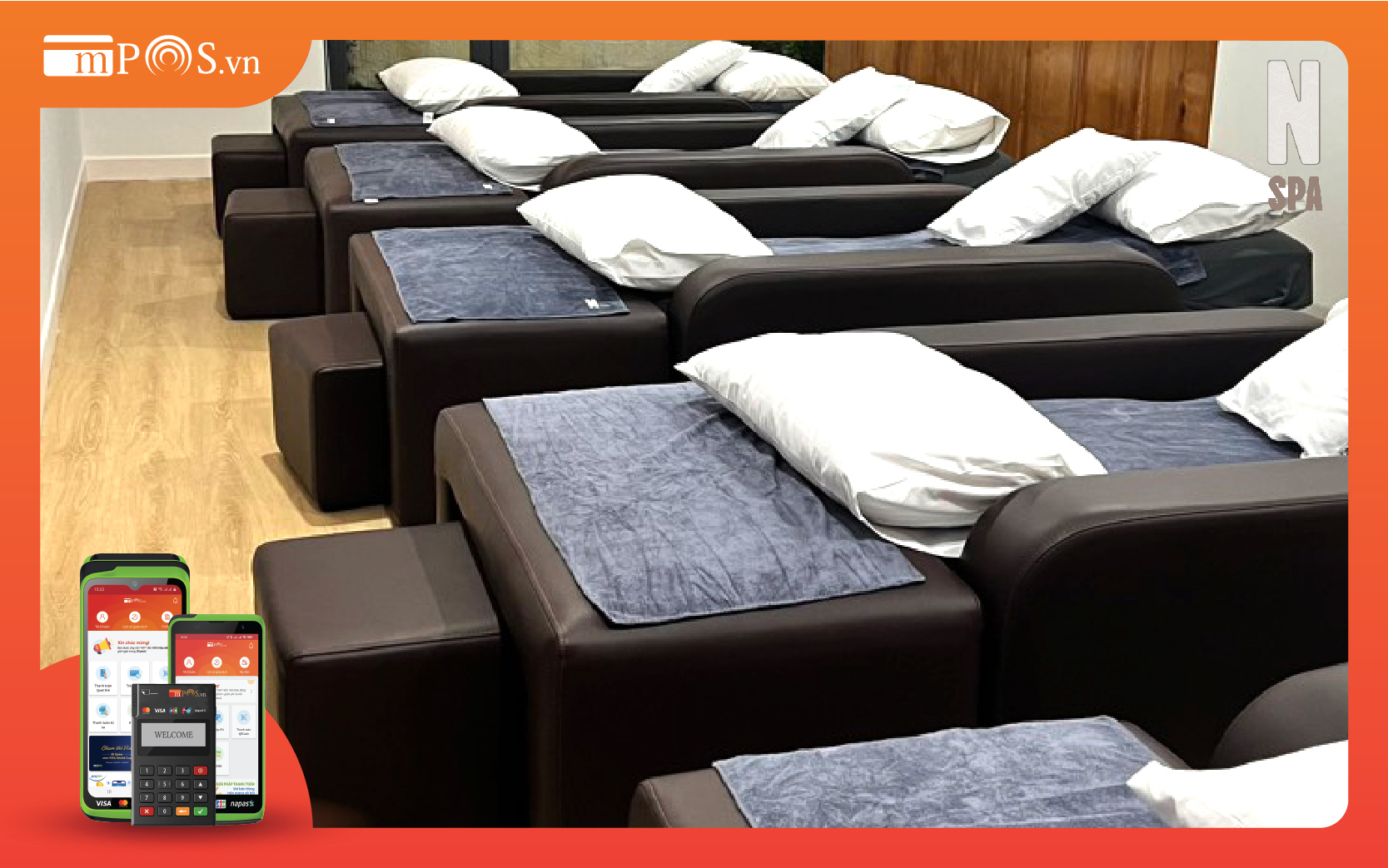 Để giúp khách hàng có thể thanh toán tiện lợi và nhanh chóng hơn khi sử dụng dịch vụ chăm sóc da và massage, Nspa đã phối hợp cùng mPOS triển khai giải pháp thanh toán toàn diện bao gồm quẹt thẻ, quét QR Code, thanh toán online qua link… Như vậy, khách hàng của Nspa có thể thanh toán dễ dàng hơn, ngay cả khi không có sẵn tiền mặt.