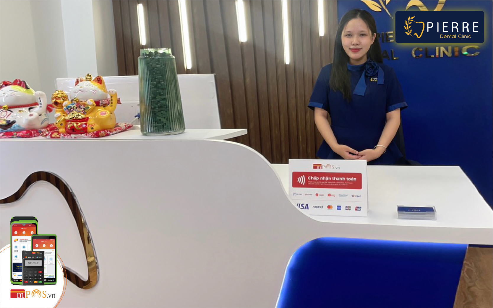 Với mong muốn đón đầu xu hướng thanh toán không dùng tiền mặt của người tiêu dùng, cũng như giúp khách hàng có thể thanh toán dịch vụ chăm sóc, làm đẹp răng một cách nhanh chóng và tiện lợi nhất, Nha khoa Pierre đã hợp tác cùng mPOS triển khai giải pháp thanh toán toàn diện, bao gồm: quẹt thẻ, quét QR Code, thanh toán online qua link...