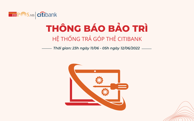 THÔNG BÁO BẢO TRÌ HỆ THỐNG TRẢ GÓP THẺ CITIBANK NGÀY 11/06/2022