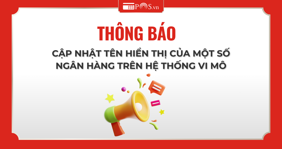 THÔNG BÁO: CẬP NHẬT TÊN HIỂN THỊ CỦA MỘT SỐ NGÂN HÀNG TRÊN HỆ THỐNG VI...
