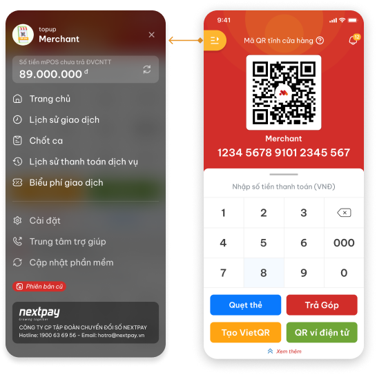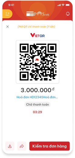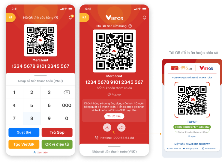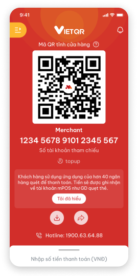 Mỗi ĐVCNT được cấp một mã QR tĩnh để nhận thanh toán từ khách hàng. Khi khách hàng quét mã QR, giao dịch sẽ được ghi nhận vào tài khoản mPOS như giao dịch thanh toán thẻ.