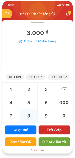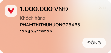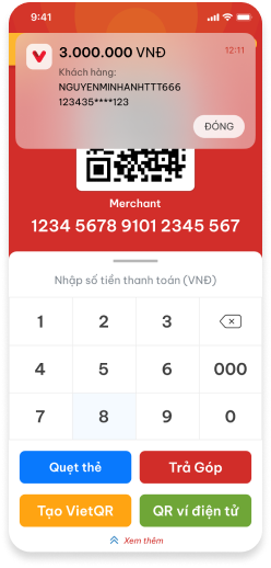 Khi Khách hàng quét QR tĩnh cửa hàng, giao dịch thành công ứng dụng sẽ gửi thông báo tới thiết bị & bật thông báo trên màn hình.
