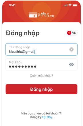Nhằm mang lại sự tiện lợi ứng dụng cho phép bạn đăng nhập bằng cả Email & Tên đăng nhập (User_name). Bạn cũng có thể thay đổi ngôn ngữ ngay trên màn hình đăng nhập bằng cách chọn biểu tượng góc phải màn hình.