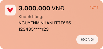Thông báo ngay khi có GD thành công.